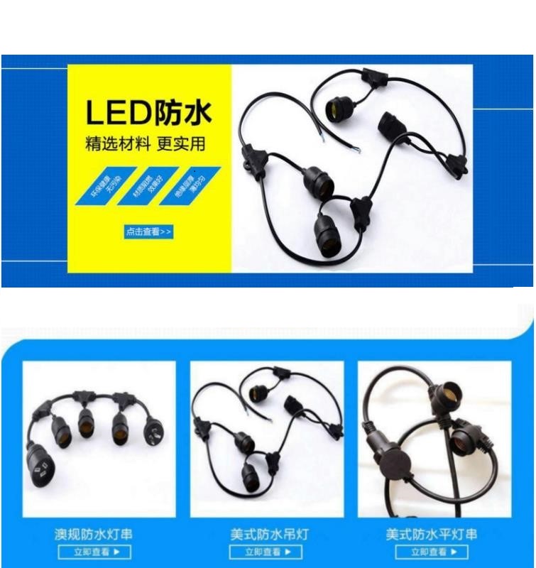 自主開模定制防水節(jié)日燈串,定制PVC護(hù)套防水等級可達(dá)IP65,保證室外使用壽命。