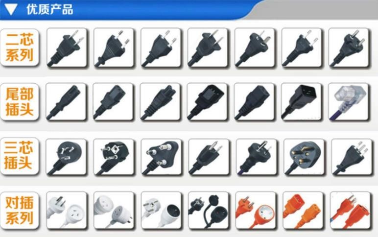 目前可提供國標(biāo)、歐標(biāo)、澳標(biāo)、美標(biāo)的插頭和接插件。